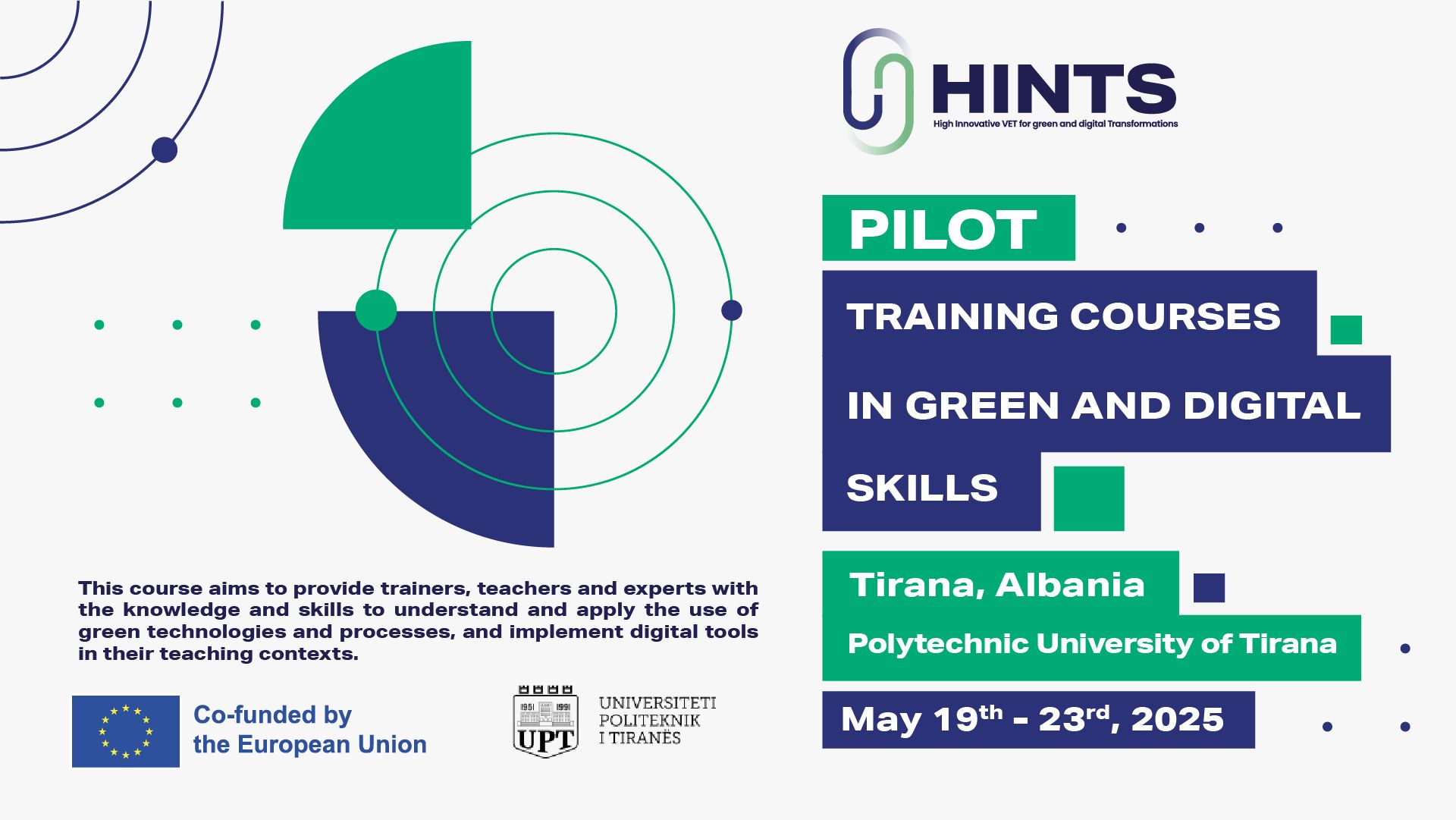 Join us in Tirana, Albania for the HINTS pilot course, part of the "Training Courses in Green and Digital Skills", from May 19th to 23rd