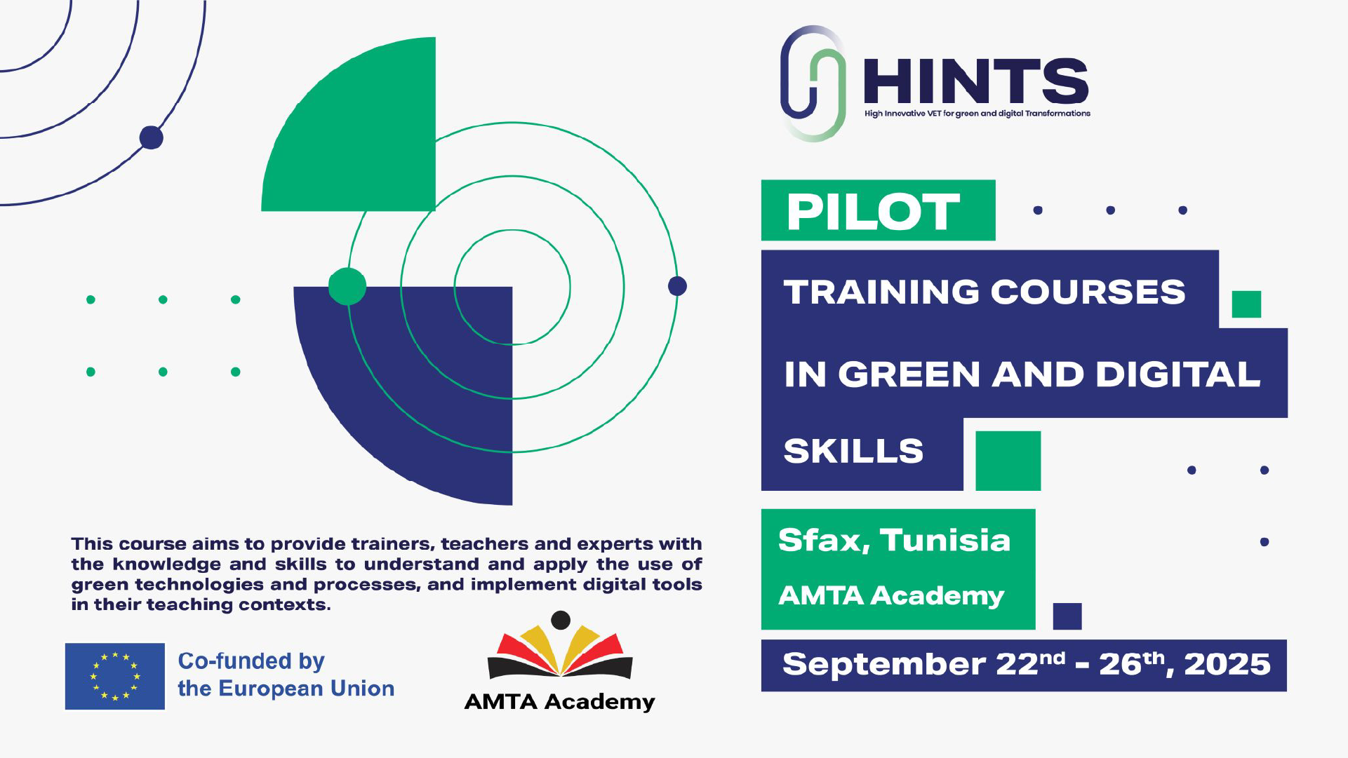 Read PostJoin us in Sfax, Tunisia for the HINTS pilot course, part of the "Training Courses in Green and Digital Skills", from September 22nd to September 26th
